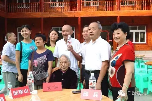 中间坐着的这位是咱们家族102岁的寿星邱广华,耳聪目明,看起还来真不太像一百多岁。