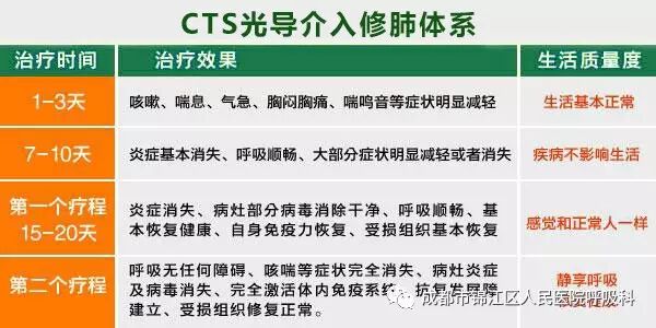 “CTS光导介入修肺体系 ”治疗哮喘、气管炎、肺气肿等各类慢性呼吸系统疾病。这种治疗体系打破传统疗法免疫耐受局限,靶向、 杀灭病毒 。