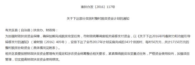 重庆市扶贫开发办公室、重庆市财政局还下达了