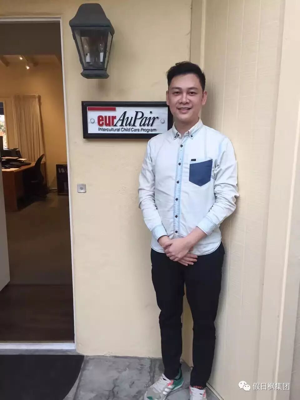 (中心院长Jeffrey Ma在Eur AuPair办公室(位于Laguna Beach)门前留影。)