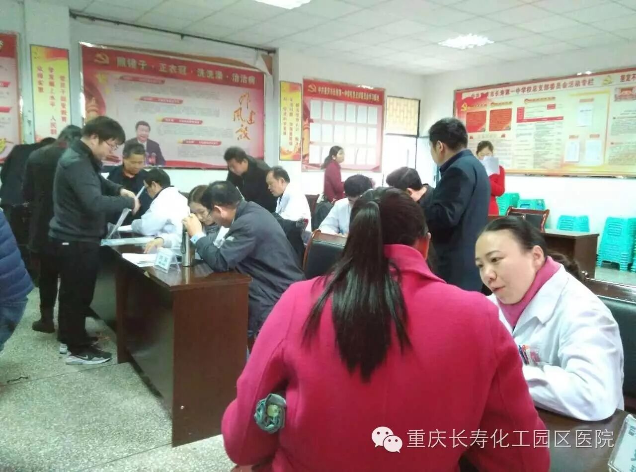 2016年11月10日下午,重庆长寿化工园区医院体检中心组织妇产科、外科、内科、疼痛康复科等各科专家到付河中学为50余名教职工进行了健康体检检后回访,得到了教师们的一致肯定。