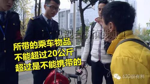轻轨站工作人员:“《轨道交通乘客守则》第7条,乘客携带的物品重量不得超过20千克,长、宽、高之和不得超过1.8米,体积不得大于0.15立方米,并不得影响其他乘客乘车。”