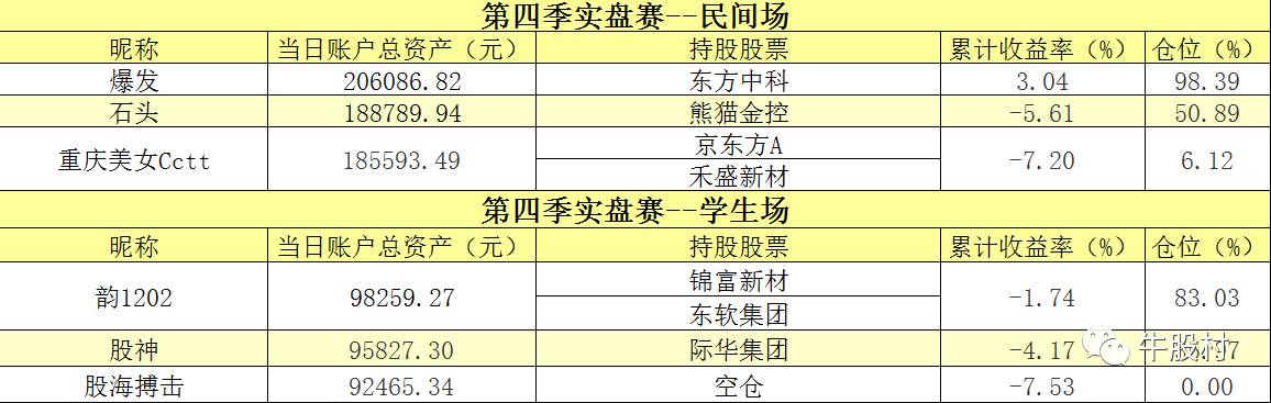 伴随大盘指数的再度回落,实盘赛选手的成绩也在周三再度趋于疲软。