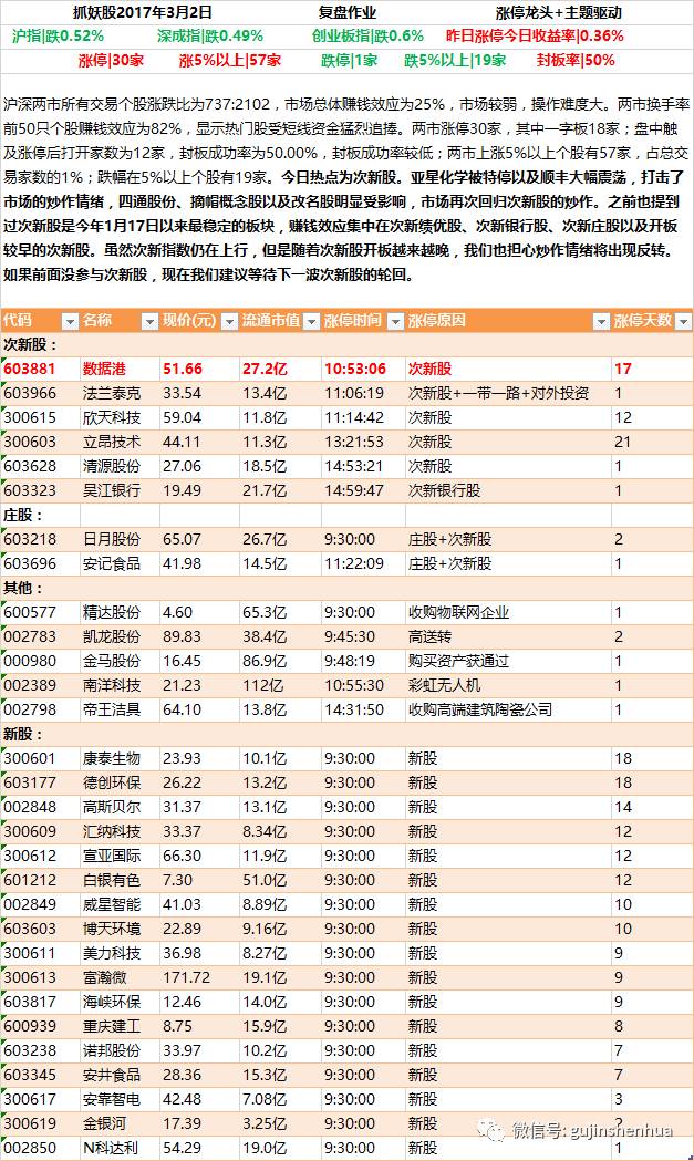 抓妖股2017年3月2日 复盘作业 涨停龙头+主题驱动