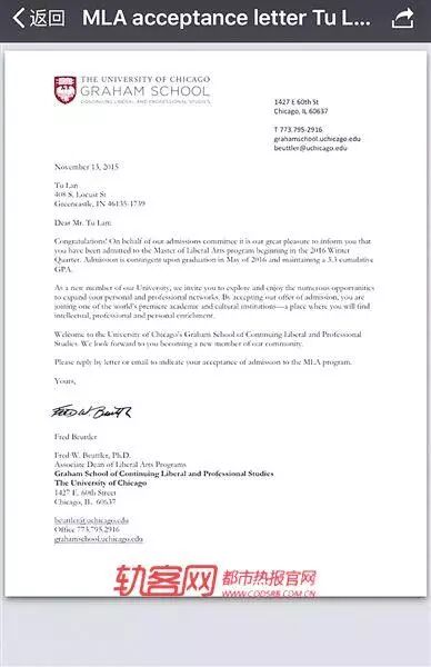 其中,达特茅斯学院给出每年四万美金的奖学金,但最终兰图选择了拥有全美排名第二商学院的芝加哥大学继续深造。“因为我喜欢芝加哥这个城市,而且我正与朋友在芝加哥搭建华人服务平台,综合考虑后,选择了芝加哥大学。”在美国的兰图通过电话告诉记者。