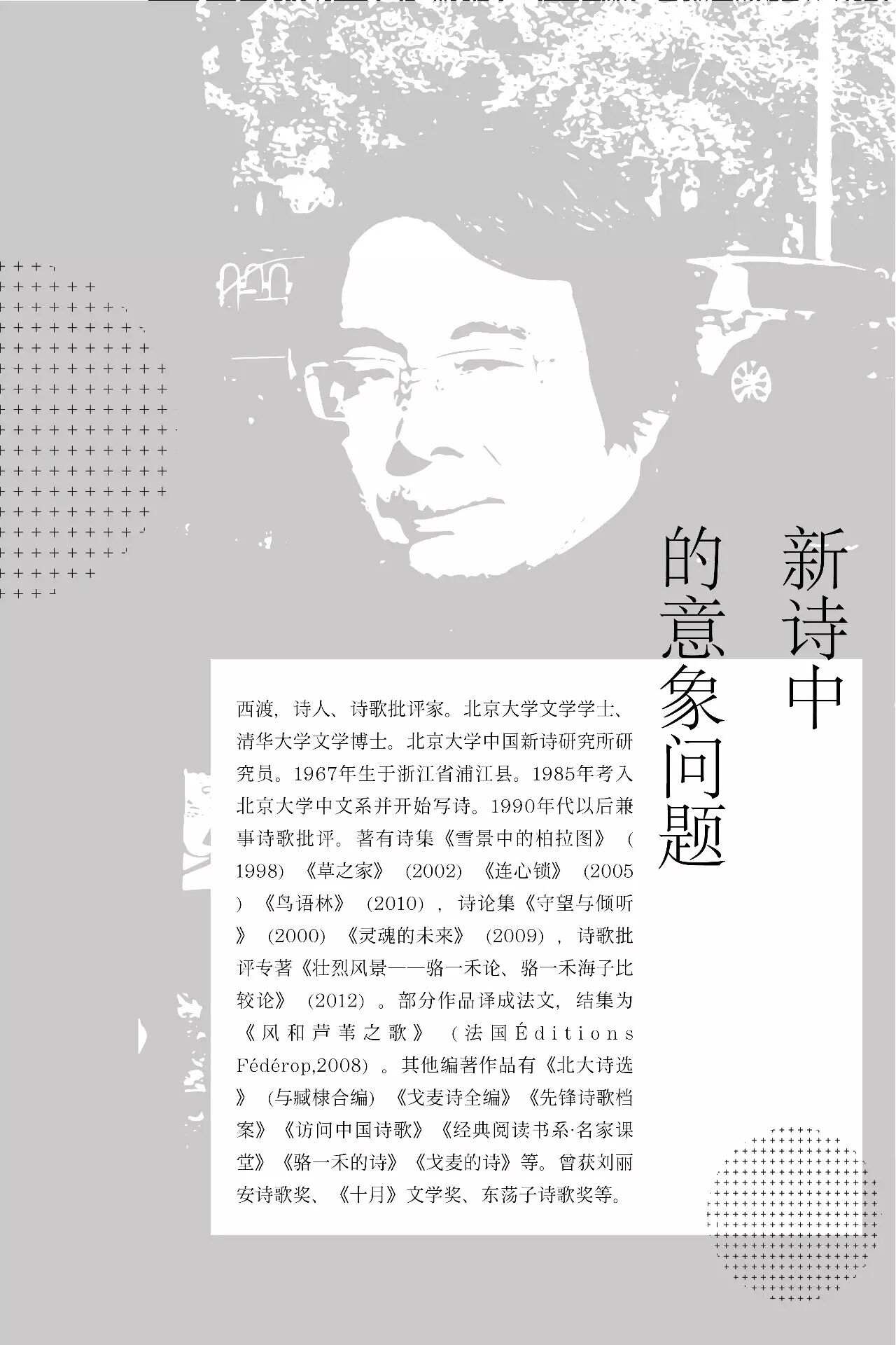 西渡,诗人、诗歌批评家。北京大学文学学士、清华大学文学博士。北京大学中国新诗研究所研究员。1967年生于浙江省浦江县。1985年考入北京大学中文系并开始写诗。1990年代以后兼事诗歌批评。著有诗集《雪景中的柏拉图》(1998)《草之家》(2002)《连心锁》(2005)《鸟语林》(2010),诗论集《守望与倾听》(2000)《灵魂的未来》(2009),诗歌批评专著《壮烈风景——论、海子比较论》(2012)。部分作品译成法文,结集为《风和芦苇之歌》(法国Éditions Fédérop,2008)。其他编著作品有《北大诗选》(与臧棣合编)《戈麦诗全编》《先锋诗歌档案》《访问中国诗歌》《经典阅读书系·名家课堂》《的诗》《戈麦的诗》等。曾获刘丽安诗歌奖、《十月》文学奖、东荡子诗歌奖等。
