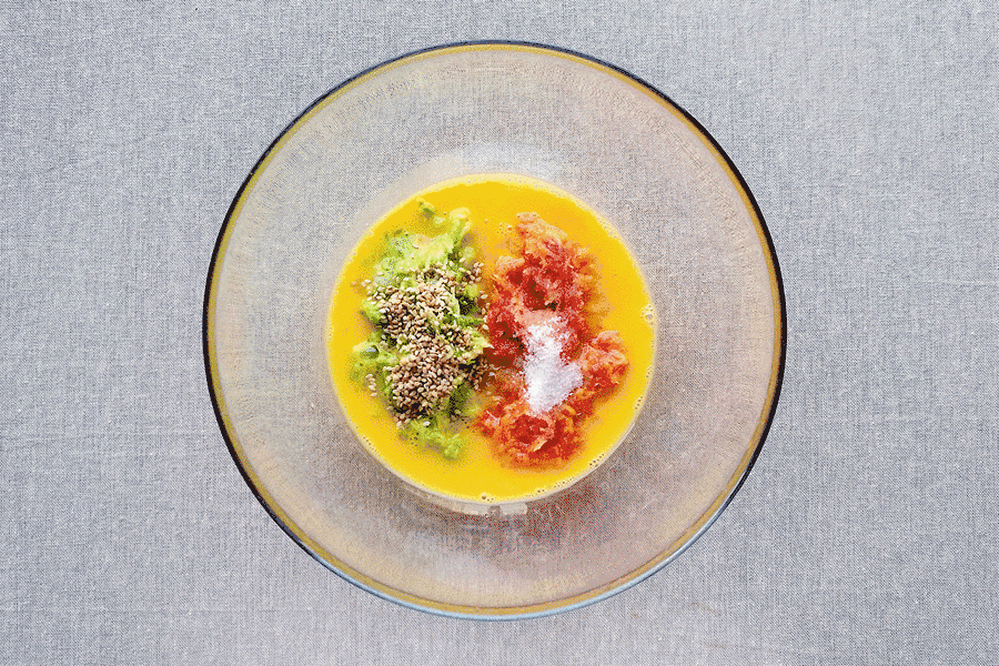 调制面糊时可适量增加时蔬用量,减少面粉用量;