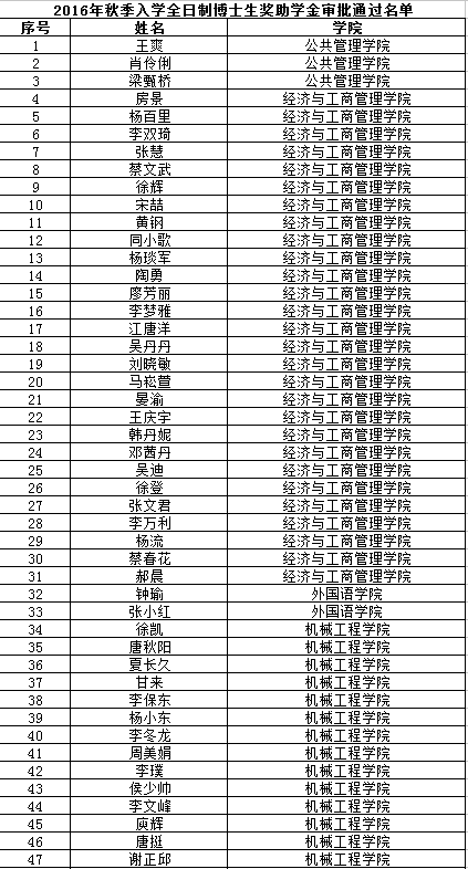 通知 | 重庆大学2016年秋季入学全日制博士生奖助学金审批通过名单公示