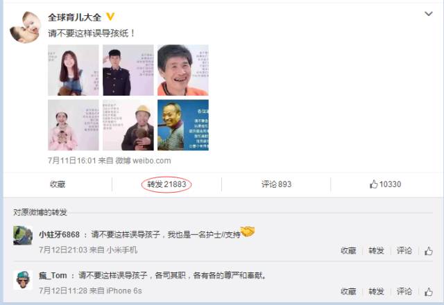 最近,新浪上一条“请不要这样误导孩子”的微博引起了网友的广泛关注,每一类职业都需要被尊重,如果你这样对训导孩子,那么他很有可能会对“教师”、“警察”、“军人”、“医生”、“清洁工”、“农民工”产生误会。