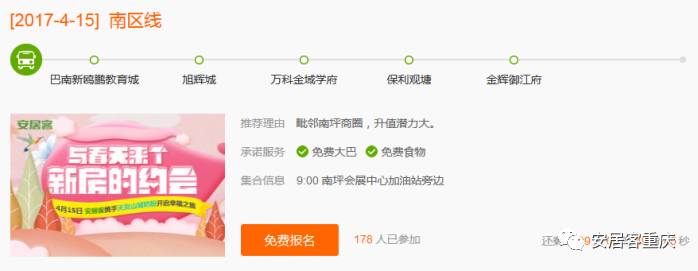 2017年4月15日,安居客为您打造主题为“与春天来个新房的约会”携手天友山城奶粉开启幸福之旅的免费看房团活动。3线齐发,网友关注的10大热盘,等候着您!