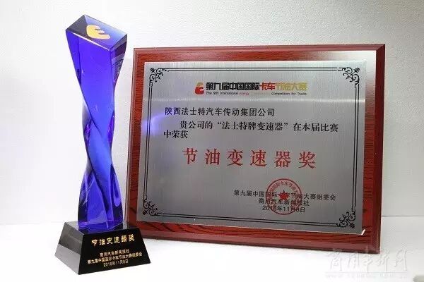 在12月1日举办的第九届中国国际卡车节油大赛颁奖典礼上,法士特变速器凭借独特的双中间轴技术、轻量化设计以及高效、节能、安全、环保等突出优势,再获“节油变速器奖”,也是国内齿轮行业唯一获此奖项的企业。