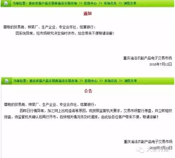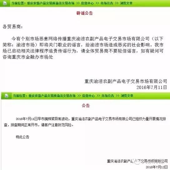 重庆渝涪农副市场11日疑似“乌龙指”,连发四公告并停盘。