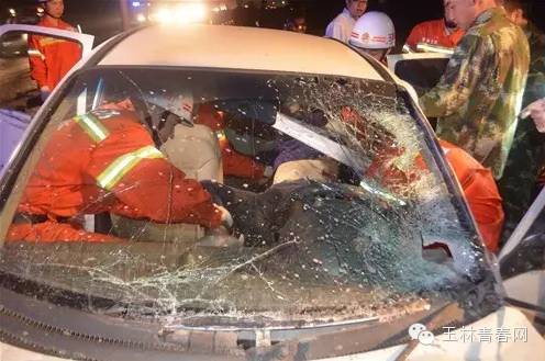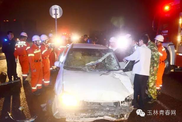 3月21日晚,玉林市教育东路发生一起交通事故,一辆白色小汽车失控撞向道路中间护栏,司机被一根从前挡风玻璃插进来的钢管穿胸而过当场死亡。![]()