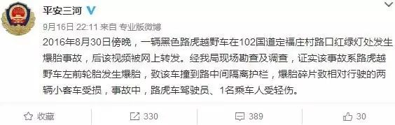 还有网友拍摄警察勘察现场的视频,地面显示大量血迹。据爆料说车内有人受伤,但没有生命危险。